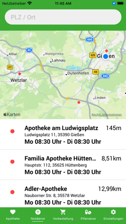 Wer hat heute Nacht Notdienst? Wir zeigen es Ihnen in unserer App. Mit Infos zur Anfahrt und Kontaktdaten der Notdienstapotheke.