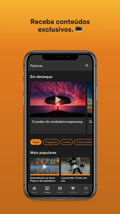 - Siga a agenda e fique por dentro de tudo que acontece na igreja, inscreva-se em eventos e tenha seus ingressos sempre com você.