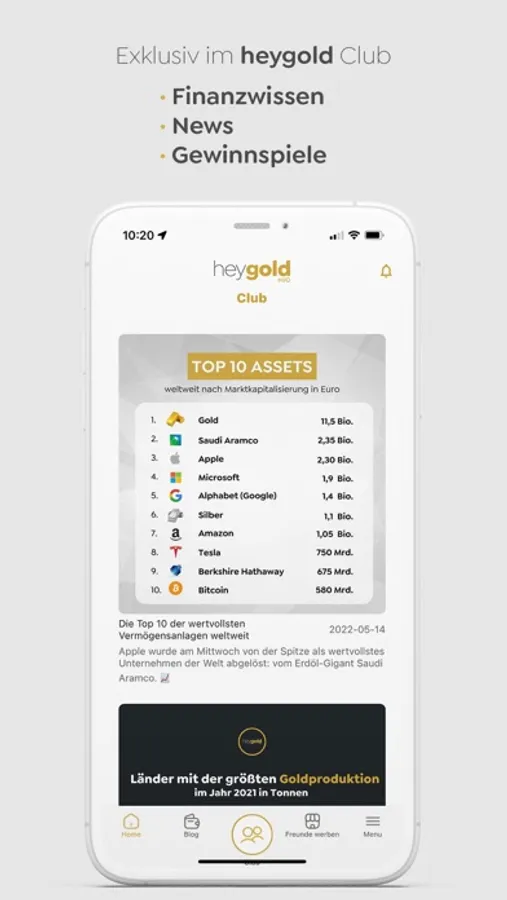 News from the world of finance, blog articles about gold and finance as well as other exclusive content and competitions await you in the heygold club.