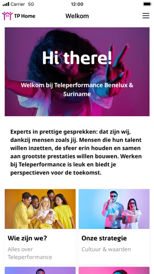 TP Home is the communication app of Teleperformance Benelux & Suriname. TP Home offers the ability to stay informed about the company, read information about the company, view the engagement calendar and more. All in your pocket.