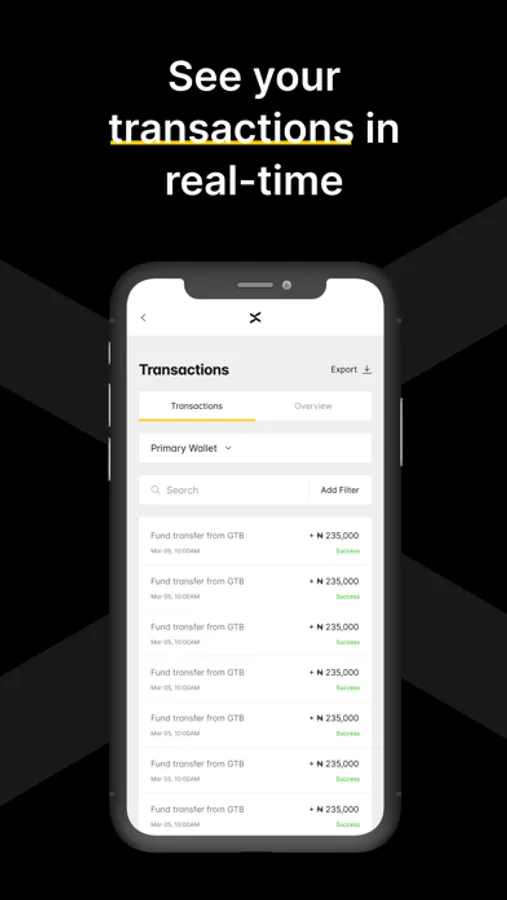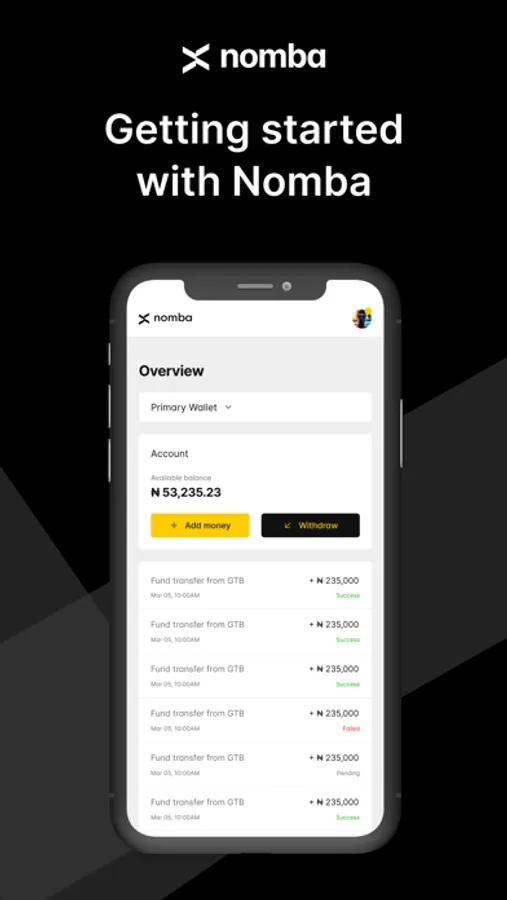 Download the app and set up your account in few minutes. You can credit your account by making a cash transfer from your bank into your Nomba Account.