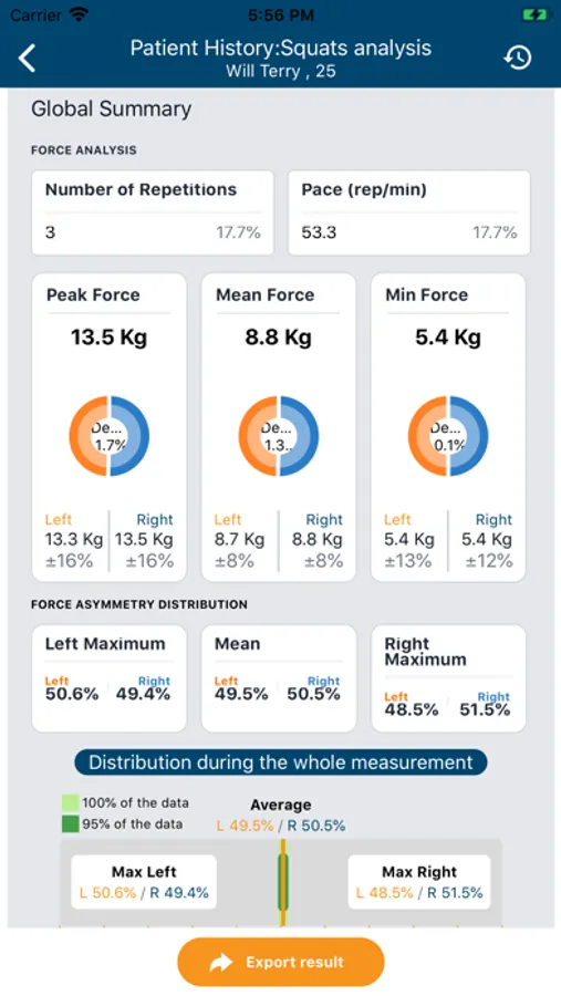 The App, together with the devices is measuring forces, balance and movement. The targeted exercises with real time biofeedback, the display of progress and the quantified measurements inspire confidence and motivation to the health professionals and their patients.