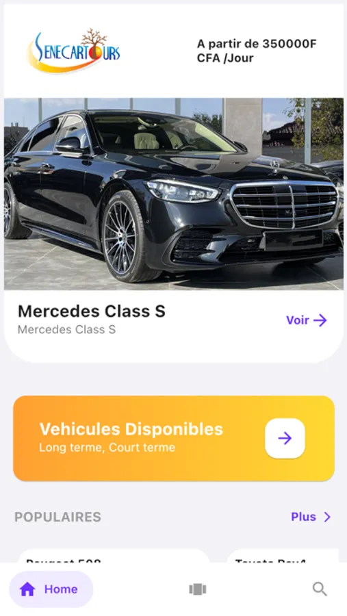 Cette application mobile, vous facilite la location et la réservation de véhicules chez Senecartours partout dans le monde. Elle expose notre Park automobile et permet à nos clients de louer un véhicule à un clin d’œil.