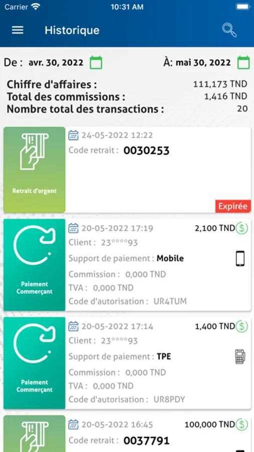 La consultation de l’historique de vos transactions et de votre solde.