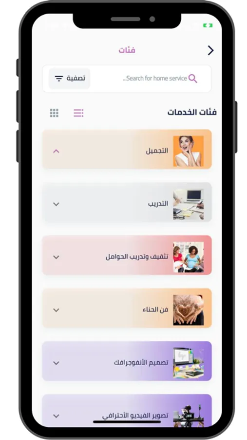 أبحث عن الخدمة أو المنتج الذي تريد، وفلتر، وأختر من بين العديد من المستقلين بالأعمال الخاصة والمصنفين في فئات خدمة مختلفة ومتعددة مثل: