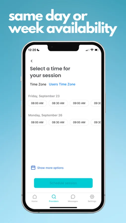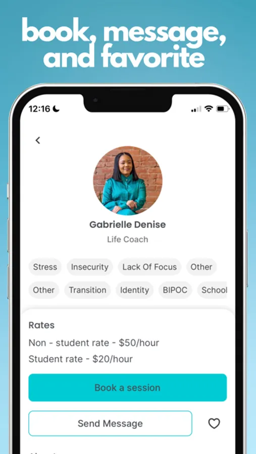 From here, view suggested providers that specialize in the exact focus areas you need most. Have a quick question about their services? View their bio or send them a quick message. From here, easily schedule a session around you by choosing an already available day and time with the provider. Each first consultation is shorter than the typical 60-minute session at 30 minutes and is 100% free, every time.