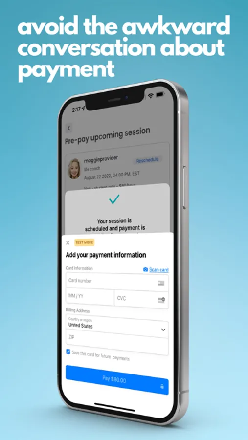 Easily pay in-app with our "pre-pay" feature to avoid that awkward conversation around payment at the end of your session. Once you begin seeing a provider regularly, after booking- you will be prompted to pre-pay, this is held until the session is completed, which is when your provider gets paid.