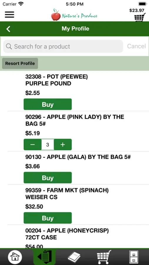 Place your order with Nature's Produce. Contact us at 323-235-4343 or info@naturesproduce.com if you'd like to signup for a login and account.