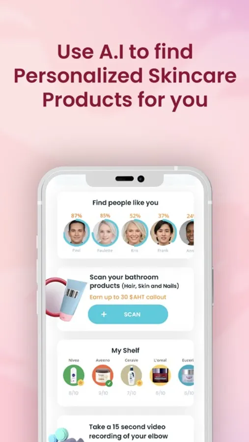Instantly add your digital bathroom shelf by scanning your skincare products. Earn $AHT crypto for powering the future of skincare technology!