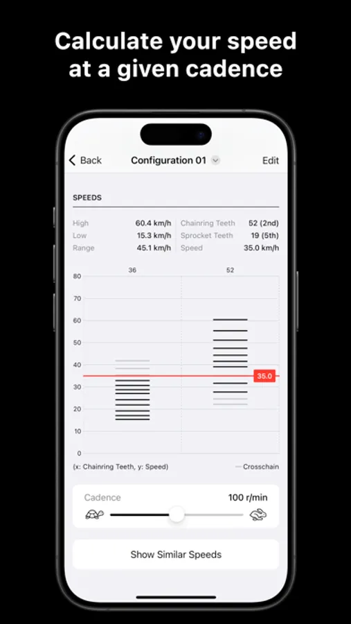 BikeCalc makes it easy to optimize the gearing on your bicycle. You can also calculate your speed at a given cadence for each gear. Plus, you can manage all your gearing configurations in one place. And there are articles helping you every step of the way.