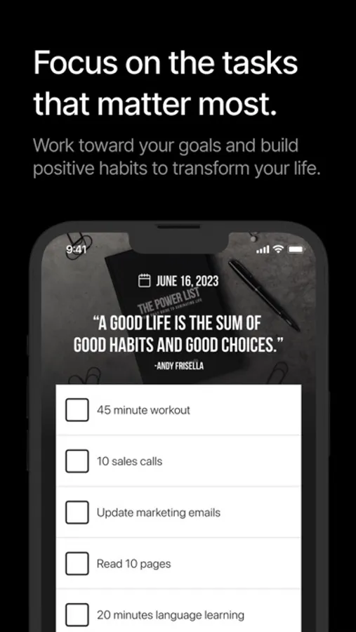 Forget overcomplicated planners and the “perfect morning routine” … successful people plan and EXECUTE. That's why The Power List has been a game-changer for thousands of people, helping them build positive habits, and start winning their life. Set yourself up for success ... separate yourself from your competition ... and start achieving your goals with the Power List App.