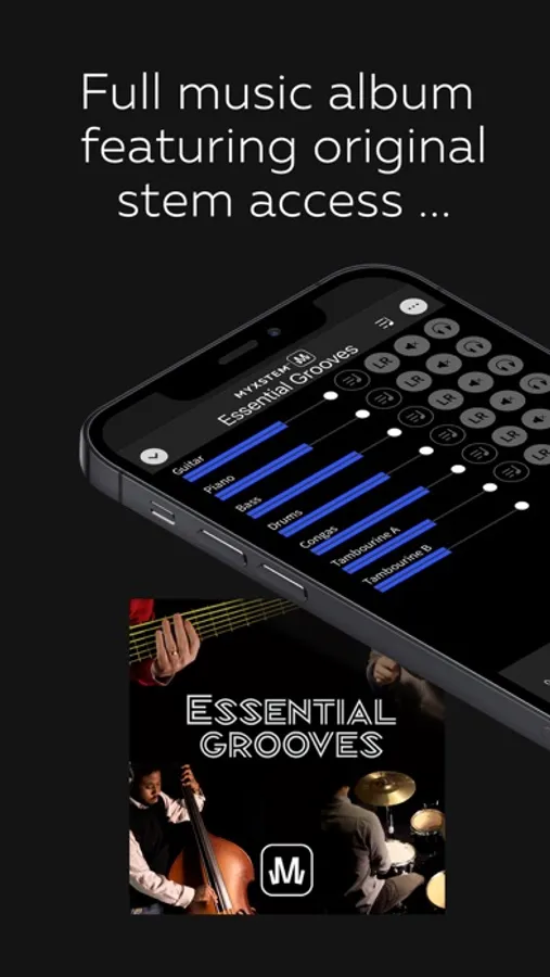 ‘Essential Grooves’ is a MYXSTEM app release, allowing users to completely control the listening experience. The app features mute, solo, pan and fade for each stem along with tempo control, looping and lyrics. By adjusting the levels of each instrument (stem), musicians can build the perfect mix to play- and sing-along. All album-as-an-app releases from MYXSTEM deliver interactive audio to create an immersive musical experience.