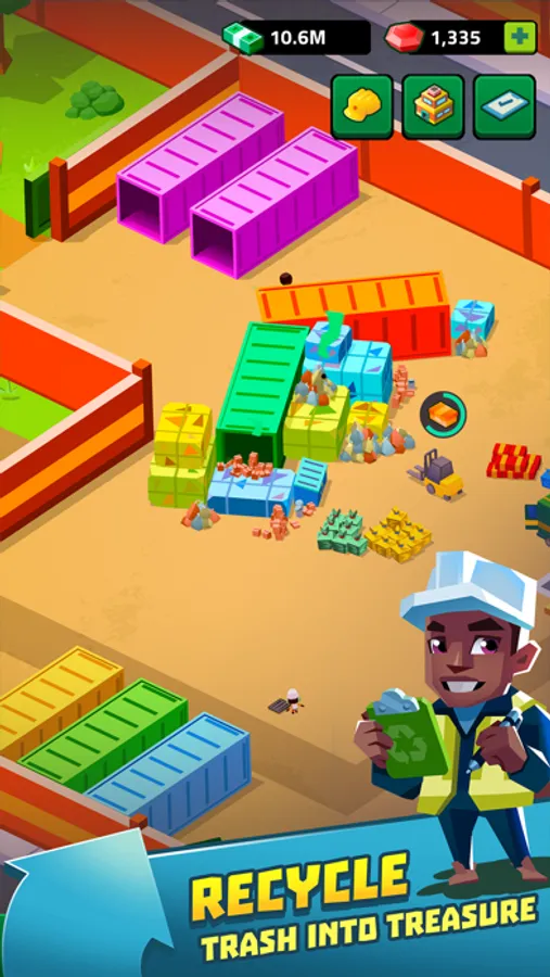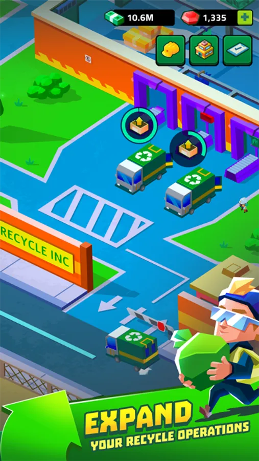 Start small and build your operation from scratch. Unlock the facility advanced recycling machinery and, garbage sorting. Maximize the efficiency of your facility by speeding up your processes; buy more vans, get more garbage, increase your research stations, train your workers and grow your operations!