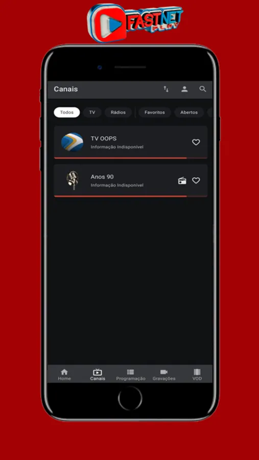 Você não precisa ficar sentado em frente à TV para acompanhar os programas que você gosta. Assista tudo através do aplicativo Fastnet Play. Você pode gravar programações, retroceder e ver a grade completa de todos os canais. Assine já seu combo e tenha acesso ao aplicativo.