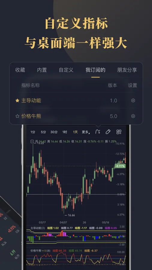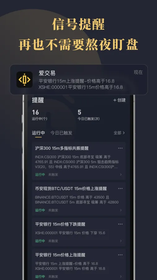 2. 支持从指标中自动提取策略信号,用于提醒、选品(即将上线)和交易(即将上线),1个脚本贯穿4大应用场景;