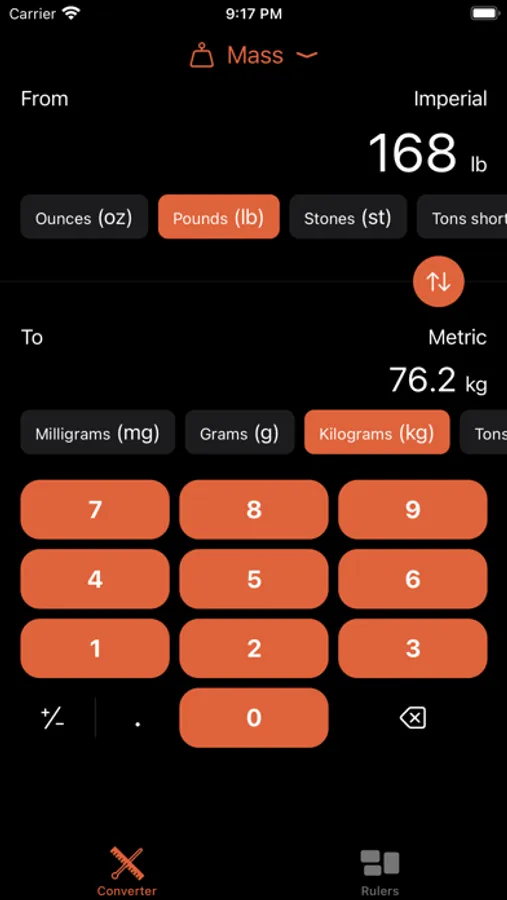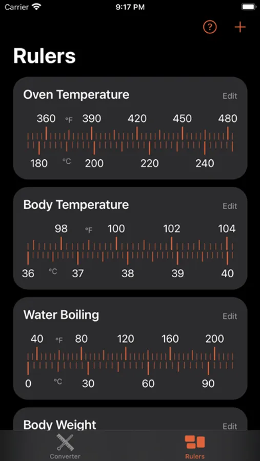 If you need to convert some units more often, like body weight or air temperature, you can setup the Rulers and add them to you Home Screen as Widgets. They will help you to convert those units without opening the app. Always handy and accessible.