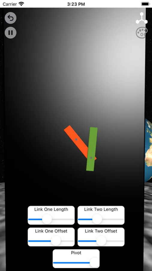 SwiftyTwoLinks is a double pendulum simulation app featuring a space-age scene in the background. All rendered in 3D using Swift and SceneKit. All open source, if you want to learn or contribute, look for the TwoLinks repository on GitHub.