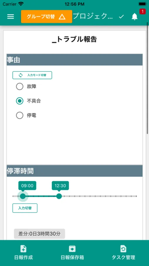 iPhoneやiPadから手軽に日報や作業報告書を書いて提出できます。