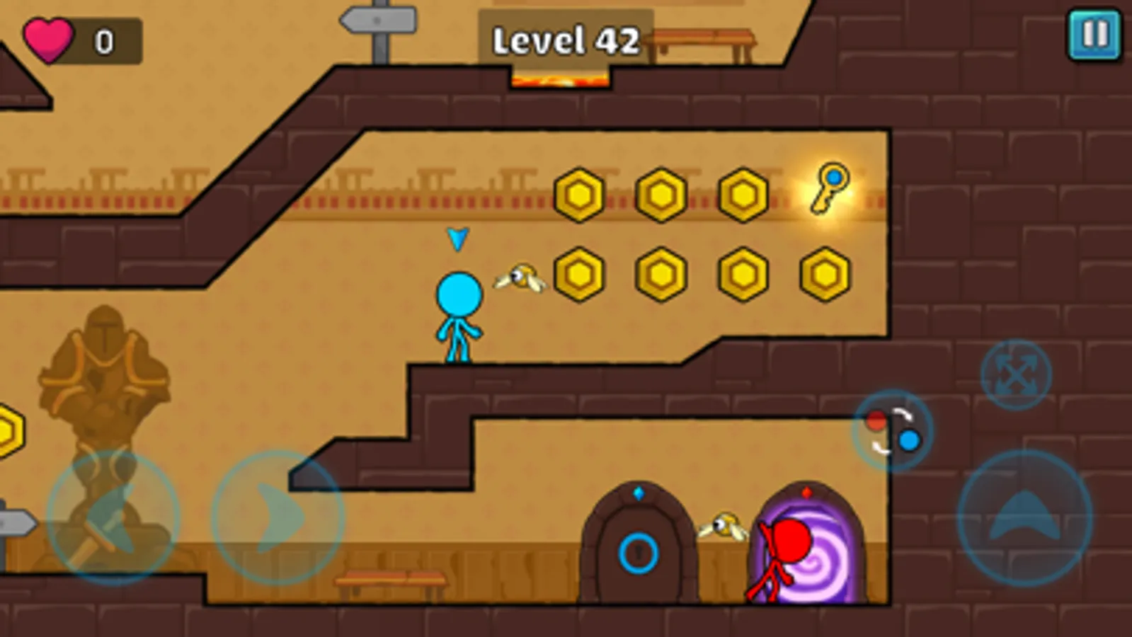 - Just tap the button "Swap" to change from Water blue girl stick to Fire red boy
