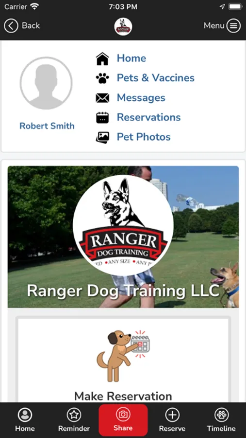The Ranger Dog Training LLC App enables users to make reservations, purchase package credits, see and pay invoices, message with Ranger Dog Training LLC, see photos of their pets, and more. Employees of Ranger Dog Training LLC are able to manage the business and connect with customers. This app is made specifically for the customers and employees of Ranger Dog Training LLC.