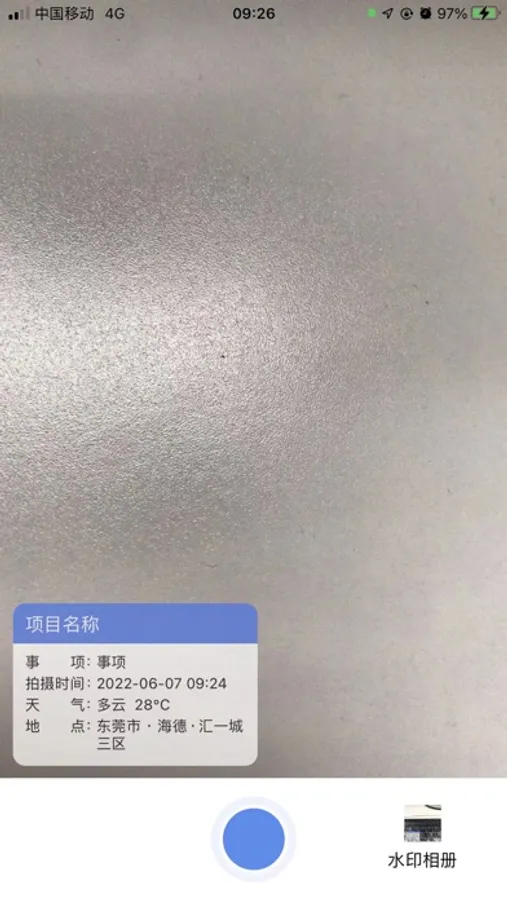 水印自动生成:照片拍摄后自动生成美观水印,便捷记录工作内容;