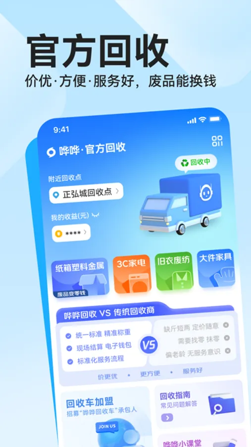 开在咱家门口的收购站,你可以轻松地卖掉旧衣、书籍,堆积的快递纸箱等,家中变整洁,每天丢弃的垃圾变成微信零钱。