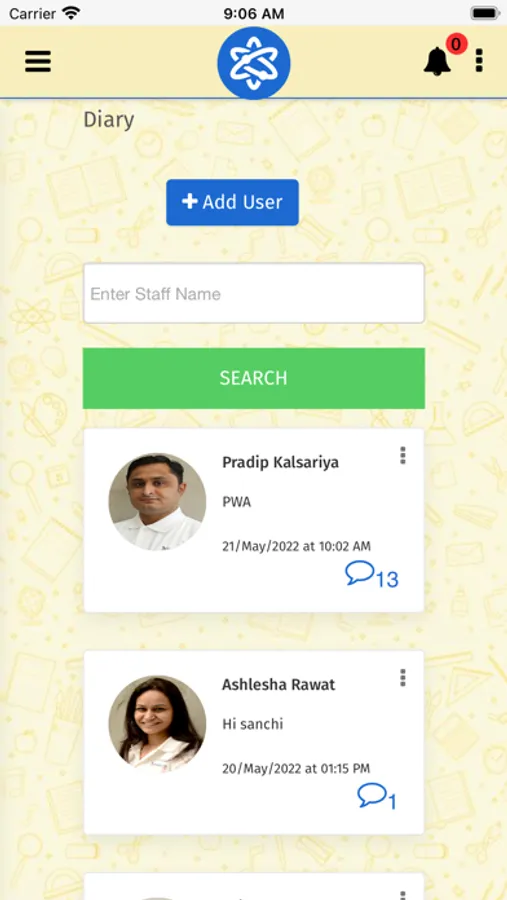 - Diary - Diary is a one-to-one Parent Teacher Chat. If a teacher has initiated the Chat, parents can reply on the same. Parents can also initiate a new Chat with a Teacher by selecting the Teacher whom they wish to chat with.