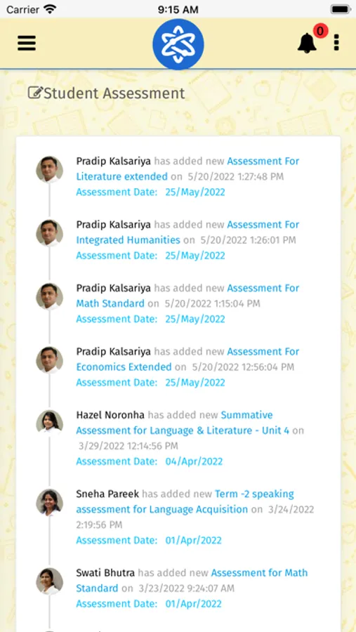 - Profile - will show Student's Profile related data e.g. Student ID, House, email-id, address, HRT/Mentor Teacher, Subject Teachers, Class Buddies etc.