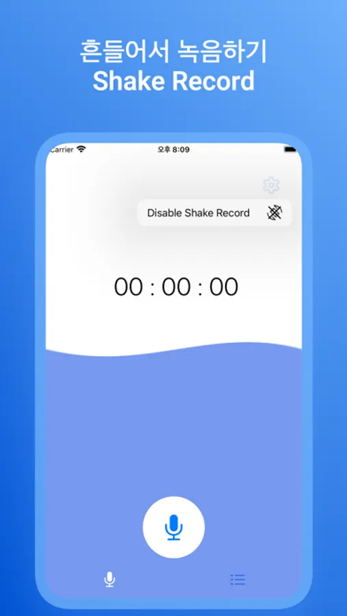 - You can turn the 'Shake Record' function on or off by clicking on the settings picture.