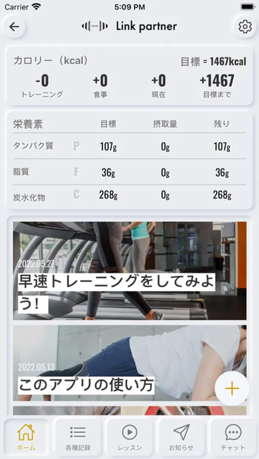 おこなったトレーニングメニューを選ぶだけで、消費カロリーがわかります。さらに、簡単な食事記録で摂取カロリーや、タンパク質・脂質・炭水化物といった栄養素の自動計算も可能。手軽に日々のトレーニングや身体測定値を記録でき、グラフで変化が目に見えてわかるので、モチベーションアップにも役立ちます。