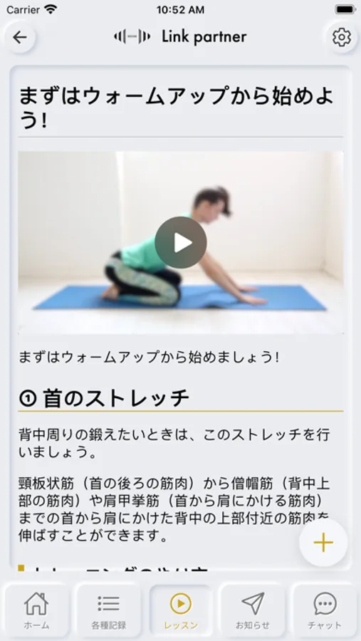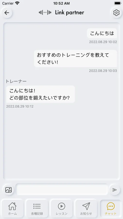 トレーナーに直接連絡できる「オンラインメッセージ機能」。やり方が合っているかわからない、効果が感じられないなど、質問や悩み事を気軽に相談できるので、つまずかずに続けられます。