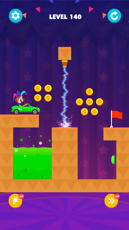 Are you ready to challenge your wits and drawing talent with Puzzles & Car? Show your creativity and ingenuity to help the car and the clown reach the finish line and win!