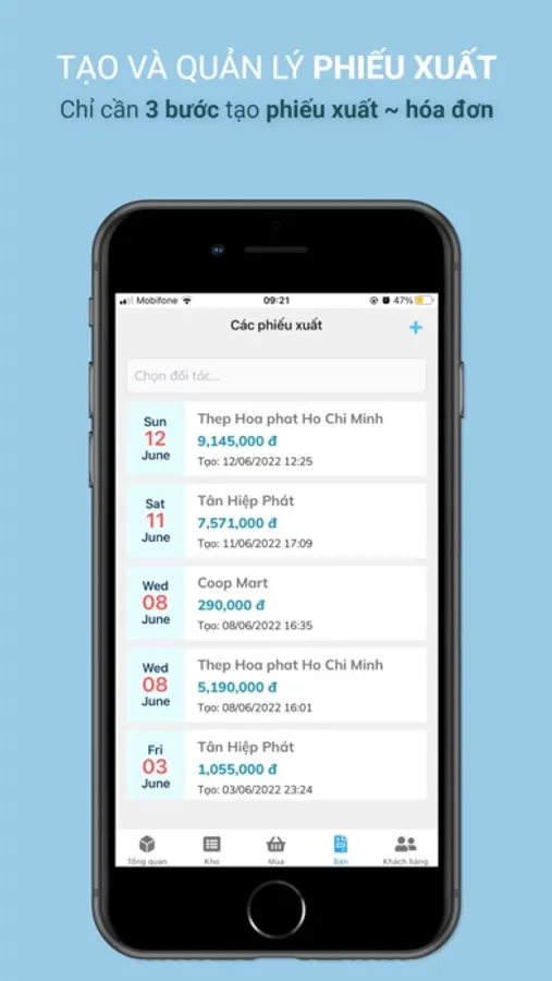 - Tạo phiếu xuất (hóa đơn). In hóa đơn cho khách hàng.