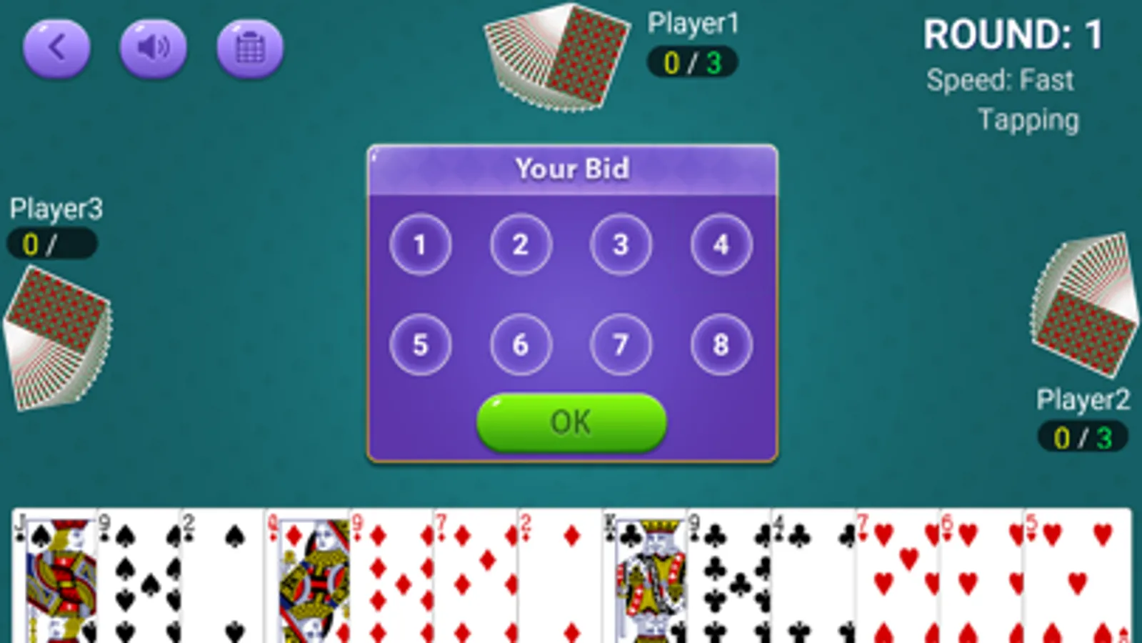 Callbreak is simple to play . 52 cards are randomly dealt among 4 players. Based on their card and tactics, they choose to bid between 1 to 8. Players throw card according to rule and the player with the highest card wins the hand. They need to win the hand equal to their bid amount. If not, they will have negative scores. This goes for 5 rounds and the player with hightest win wins the game.