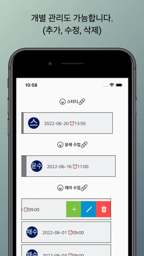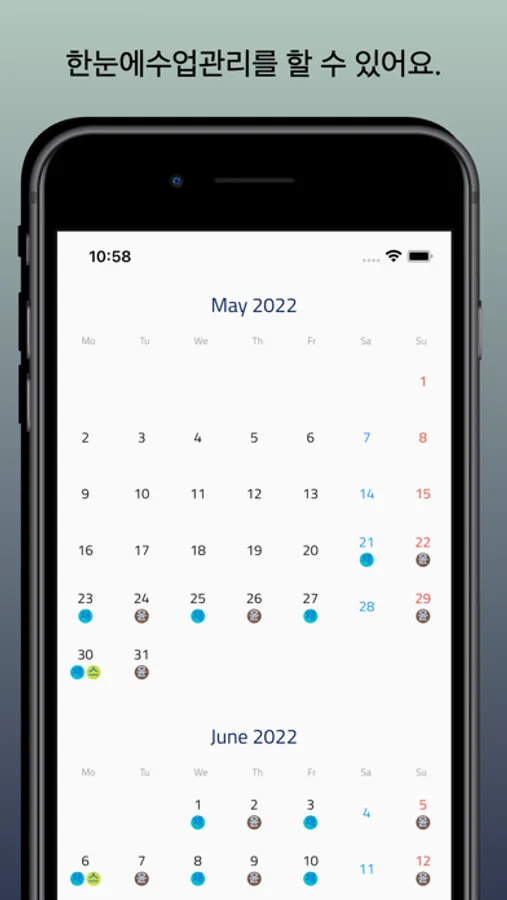 방문학습 등의 개인 수업을 진행하는 사용자의 스케줄 관리 앱.