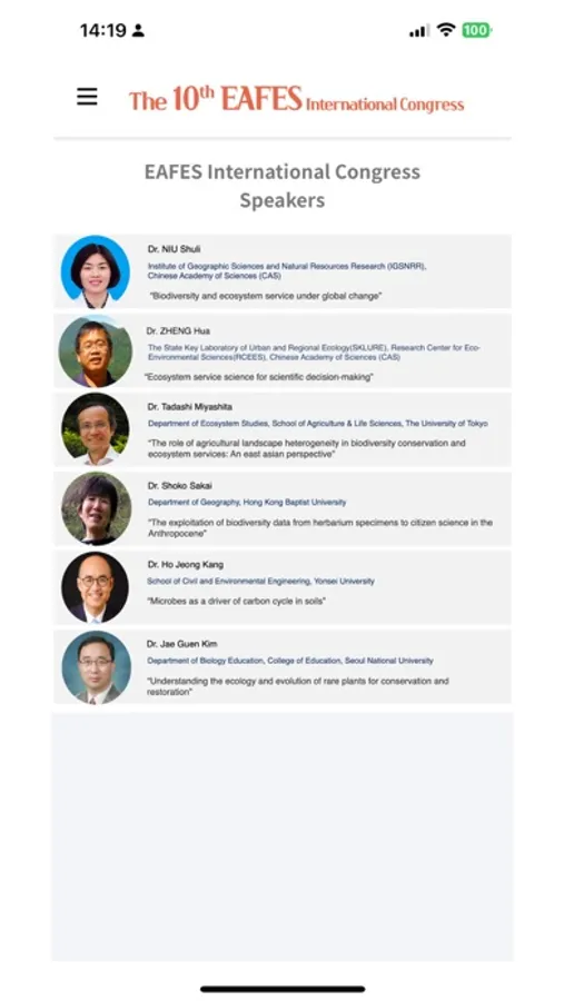 2. **Plenary Session**: This section introduces the plenary speaker(s) for the congress. These are typically renowned figures in the field of ecology who will deliver plenary speeches at the event.