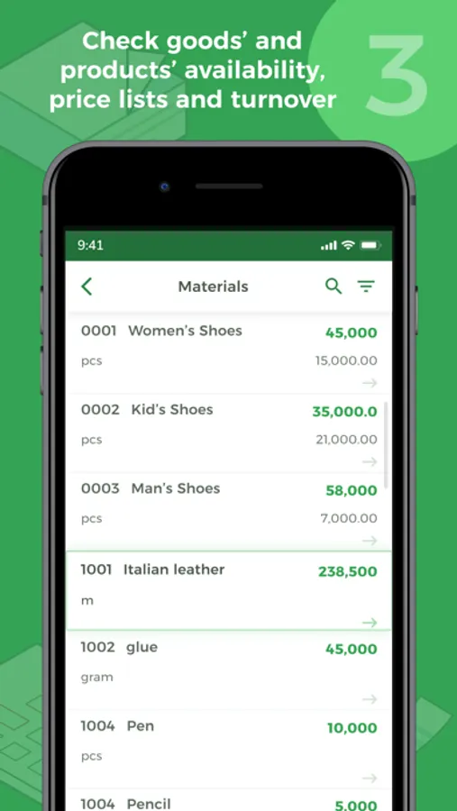• Check goods’ and products’ availability, price lists and turnover