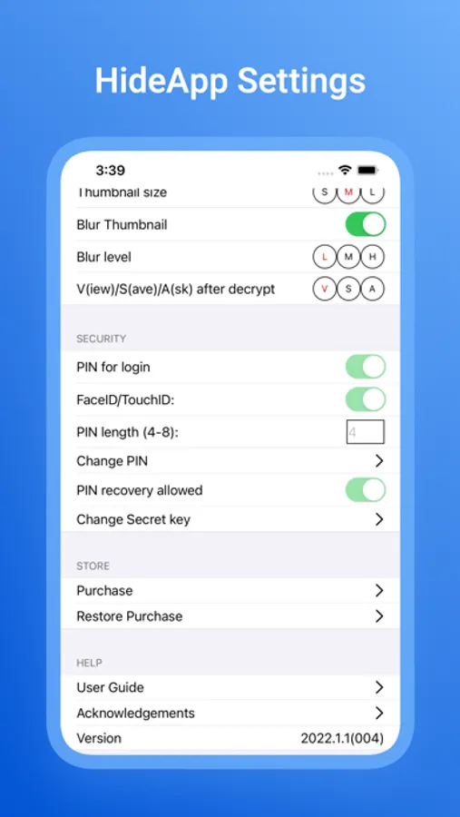○ Thumbnail size for encrypted photo/video (Small, Medium or Large)