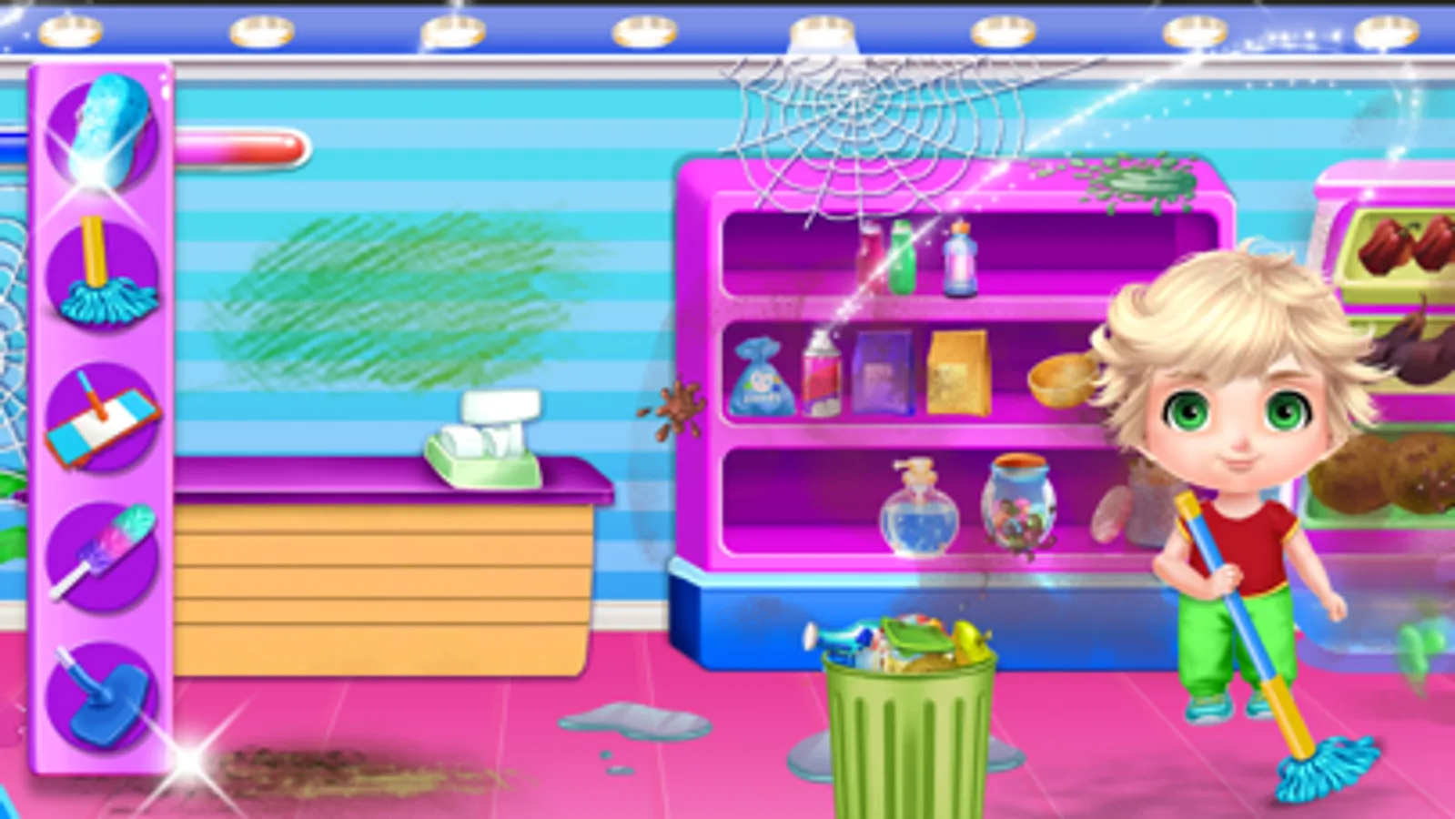 Fun activities to play on this super cool supermarket game! Start by cleaning store so when doors opens its all set up to attend clients.