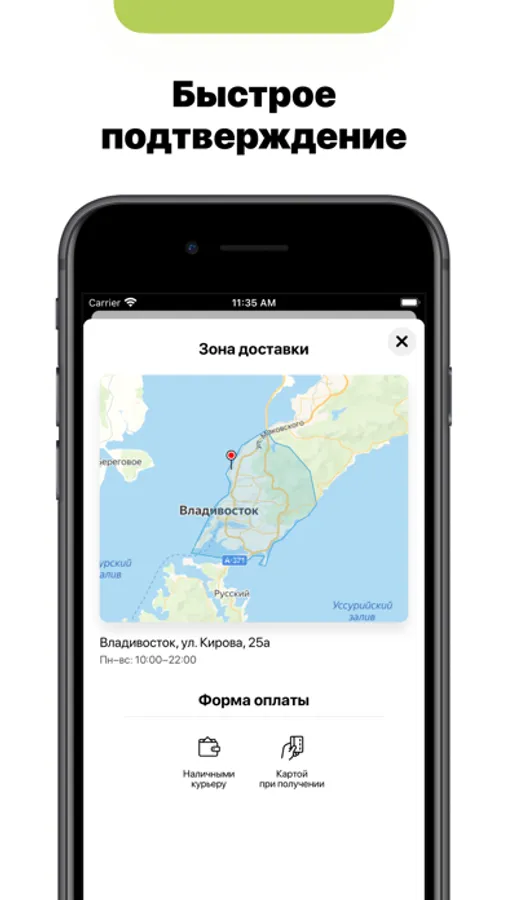 — Быстрый заказ с мгновенным подтверждением через приложение.