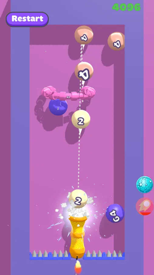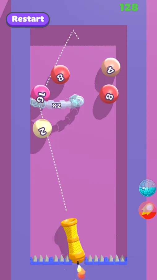 Hit the balls with the same number and combine them!
