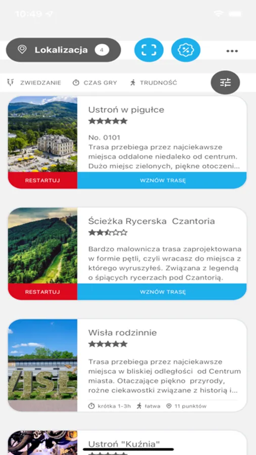 Tryb zwiedzania umożliwia jak najprostsze wskazanie „drogi” dotarcia do punktu z wykorzystaniem mapy. Dotarcie do celu i odbicie kodu QR, generuje opis miejsca oraz odkrywa kolejny punkt do zwiedzenia. Jest to tryb idealny dla osób, chcących w prosty i przejrzysty sposób zwiedzić miasto.