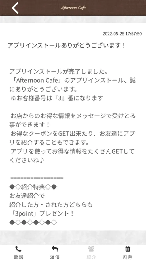 アフタヌーン カフェのアプリをSNSを通じてお友達に紹介する事ができます。