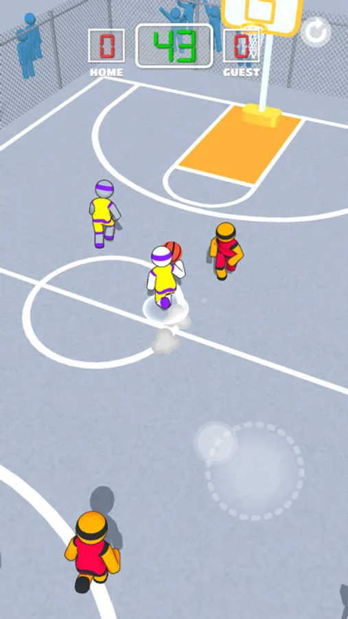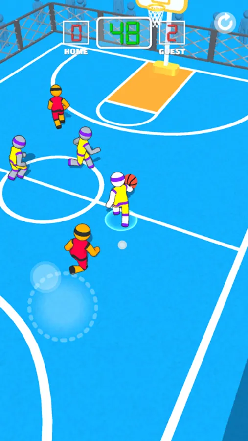 In this casual game you will engage in fun fast paced 2x2 PvP street basketball matches. It's your team against other player's team, go grab the ball and score some 3 pointers!