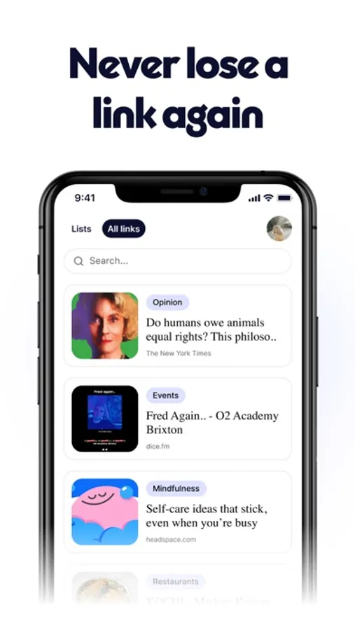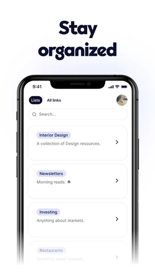 Jota helps you get the most out of your links. Paste links within the app with one tap, or add them from your browser. Create lists and categorize your links with a custom tag.