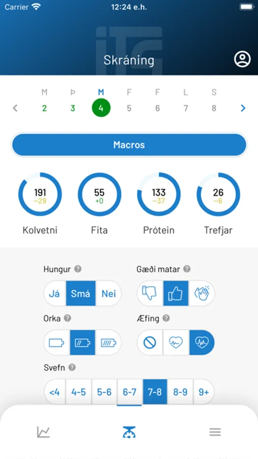 ITS Macros' main goal is to provide personal nutrition coaching. In the app, users can submit daily nutritional metrics for their food intake and get feedback from coaches. Users can log other health metrics such as weight and body measurements.
