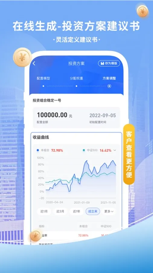 【投研更专业】:通过多因子模型,结合大数据以及量化工具,提供更加专业的投研工具,协助投顾制定投资方案。