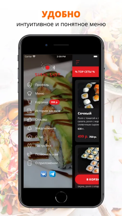 Воспользуйтесь удобным приложением для заказа суши роллов «Sushi Shef» в Краснодаре.