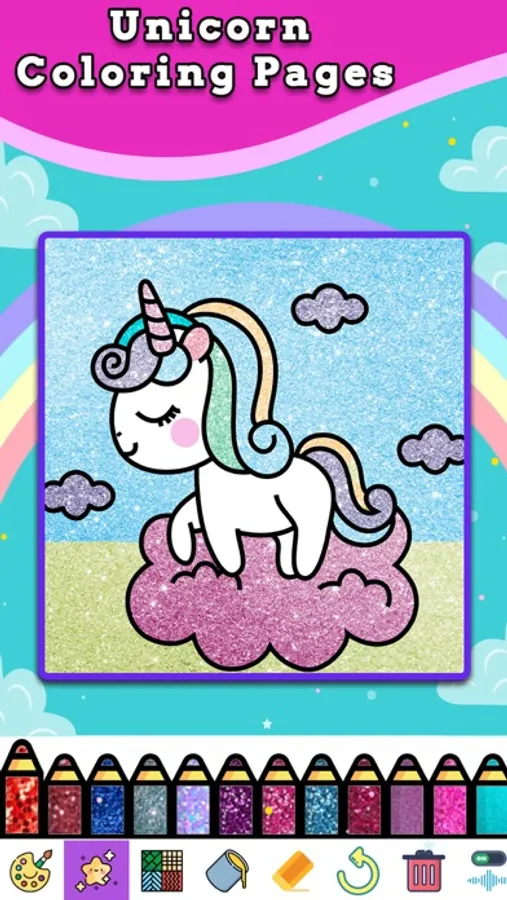 - This unicorn colouring game has amazing glitter colours with beautiful colour pallets to enhance the beauty of these sparkling unicorns.