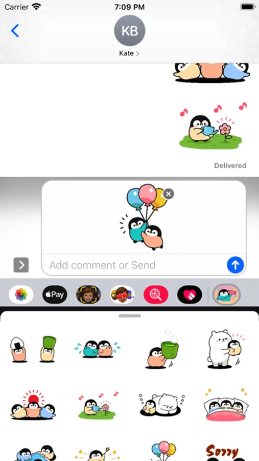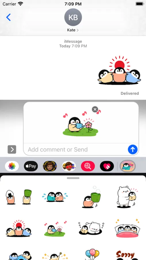 Fun and Cute with "Cute Penguin 5 stickers" pack. It is always ready to add more emotion to your text.
